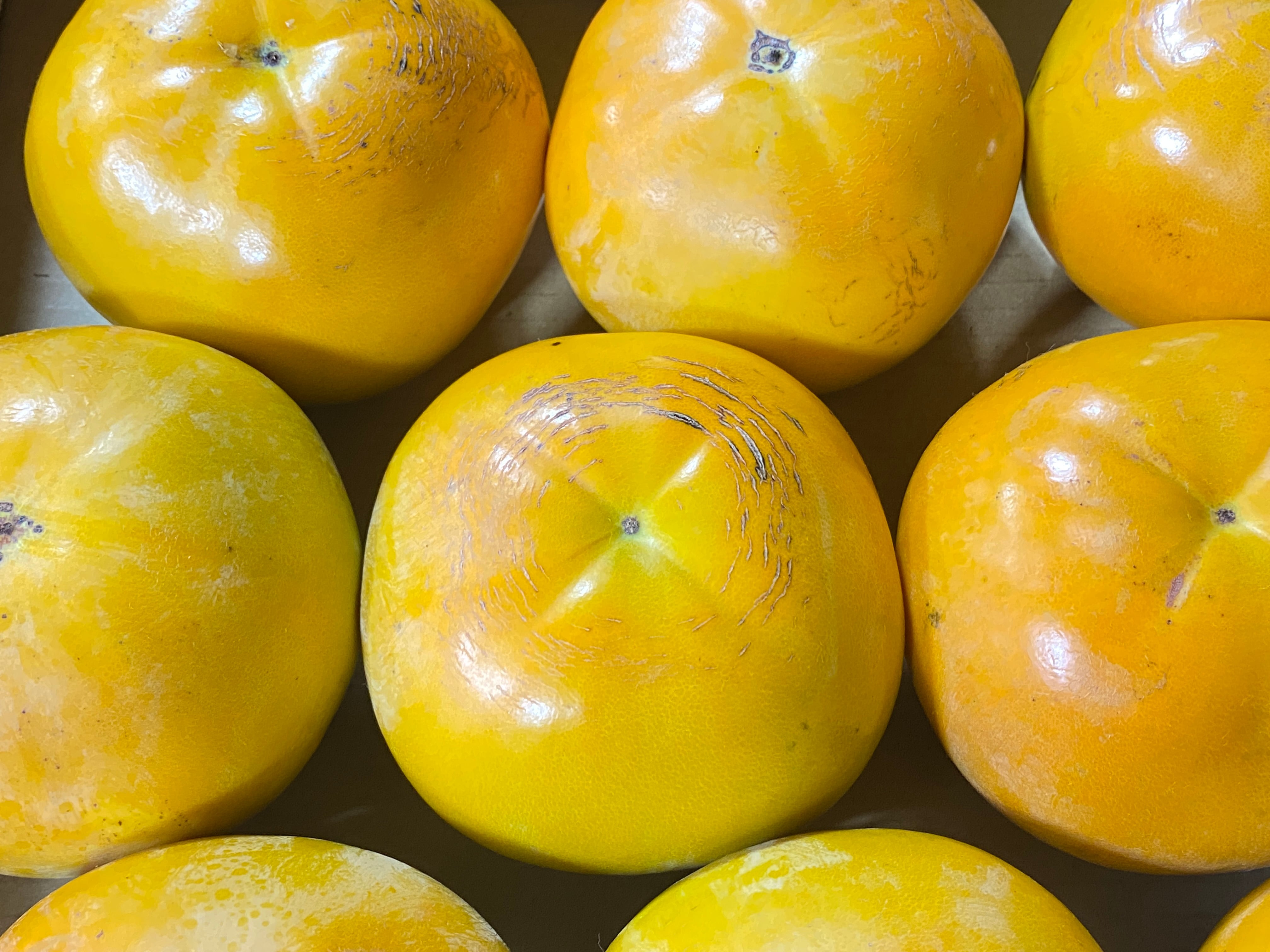 池尻農園の太秋柿は、条紋と言われる傷が特徴で、種が少なく食べやすい人気の早生柿です。サクサクとした独特の食感と、上品な甘みが特長で、一度食べれば忘れられない美味しさ。ご家庭で秋の味覚を楽しむのはもちろん、贈り物としても喜ばれます。